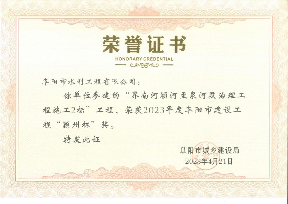 2023年度阜陽(yáng)市建設(shè)工程“潁州杯”獎(jiǎng)